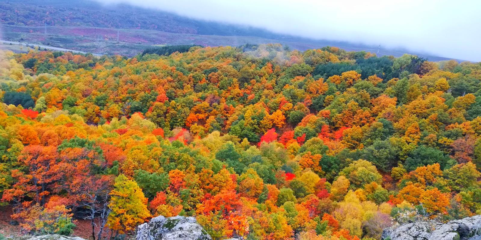 Cruzamos el arroyo, en esta zona ya vemos los primeros abedules, junto con avellanos, robles y acebos. El camino desemboca en una pista a la que nos incorporamos, hacia la izquierda (Noroeste). El camino nos conduce a la Fuentefría. Cerca de esta podemos ver un abedul con el tronco horizontal. El camino ahora, un poco desdibujado, baja hasta un bonito mirador, donde se nos muestra una magnifica panorámica de la Dehesa. Volvemos a dirigirnos hacia la fuente, y esta vez nos dirigimos hacia la izquierda, buscando el arroyo, para cruzarlo y bajar por su margen derecha. El camino es imperceptible, seguimos el río hasta que este vuelve a aparecer, y nos incorporamos a él hasta llegar al cruce del inicio.